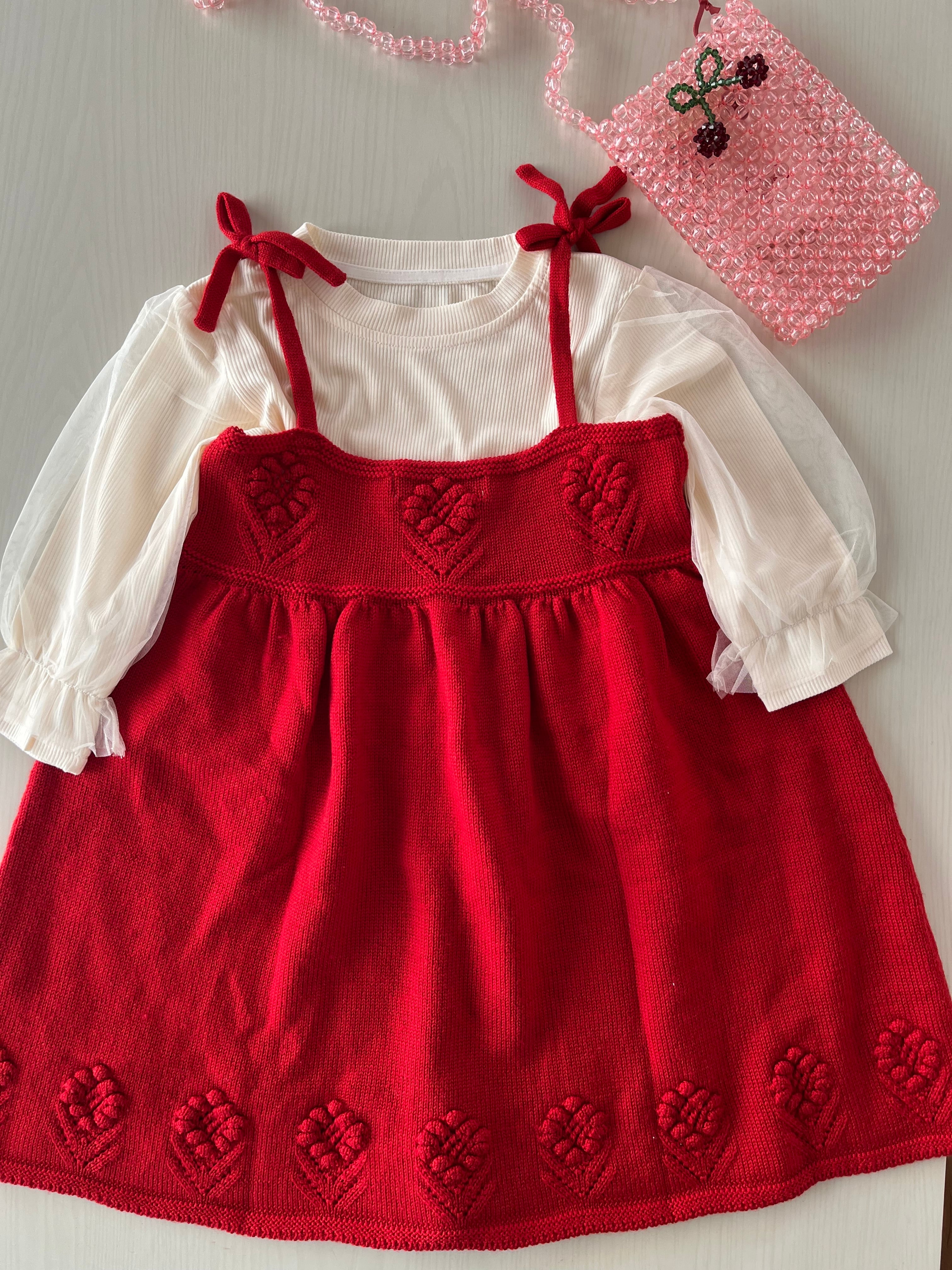 鮮やかな赤色が目をワンピースです。お子様の普段着や特別な日にもぴったりな一着です!
